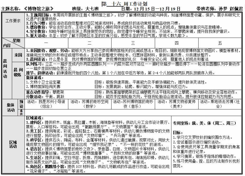 第十六周工作计划