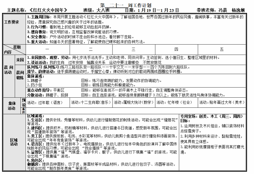 第二十一周工作计划