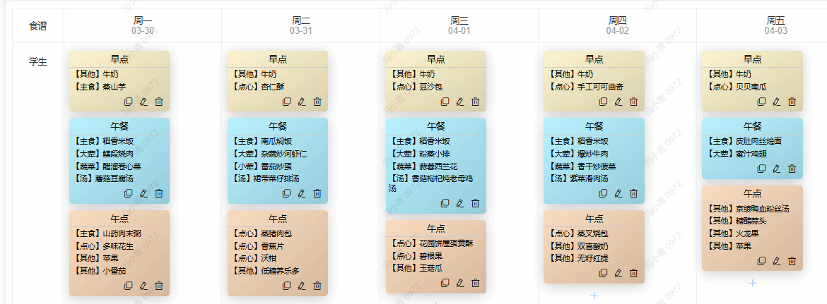幼儿第五周食谱2026年3月30日~4月3日