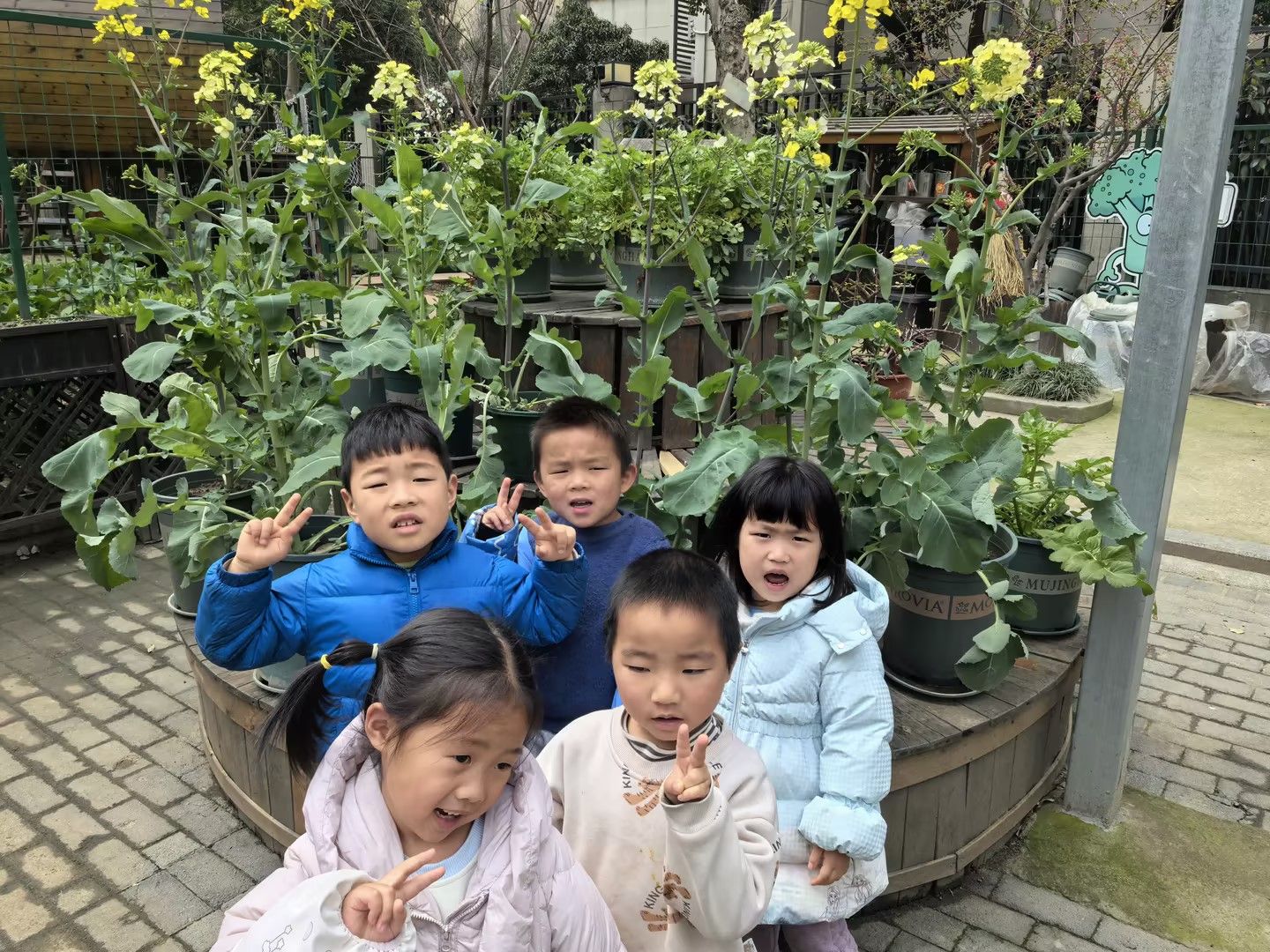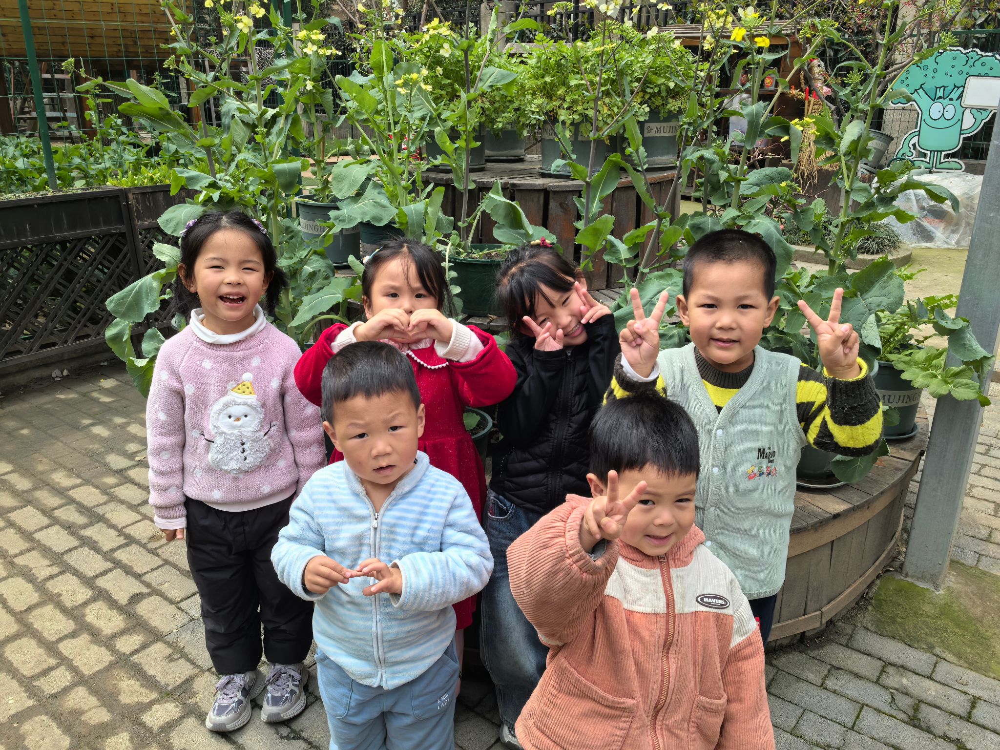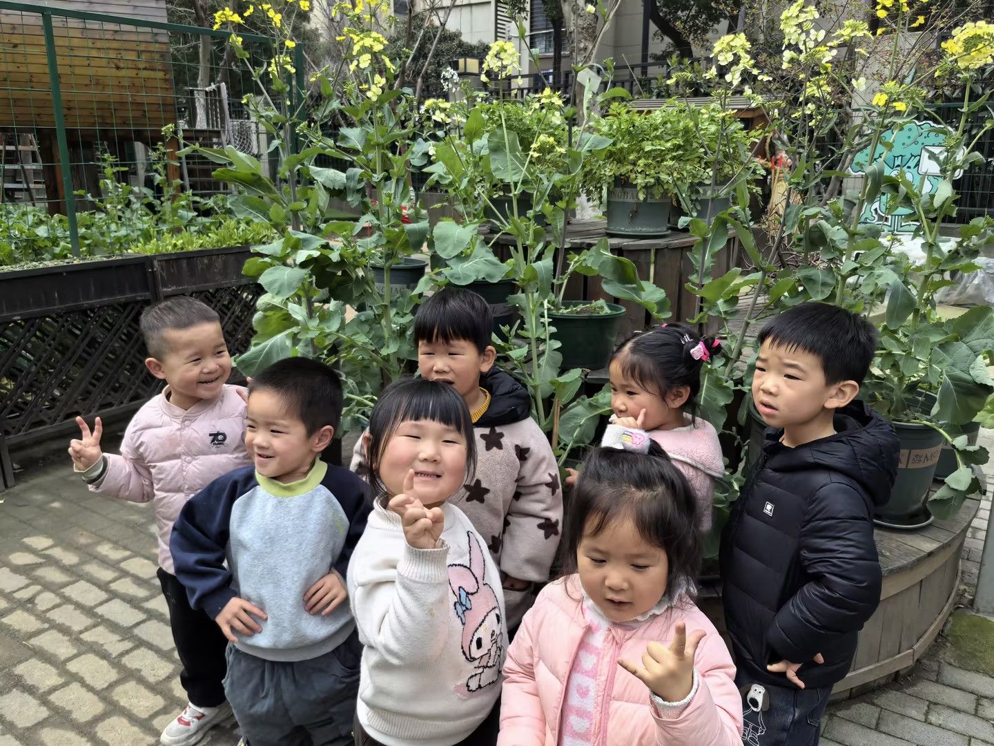 三月早春,孩子们在散步时发现蔬菜博物馆里的油菜花都开了,愉快地与油菜花合影,记录这美好的一刻。
