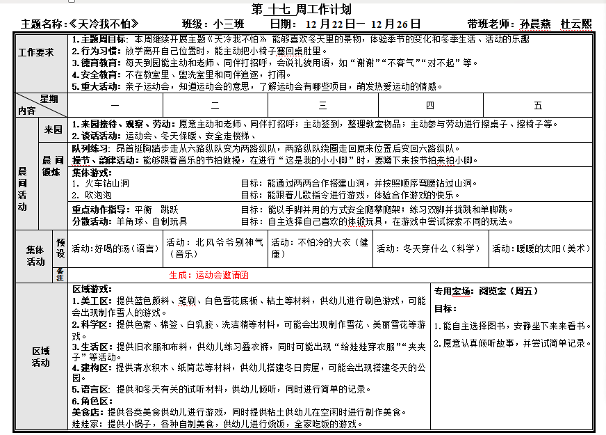 第十七周周计划