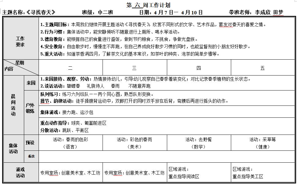第六周工作计划