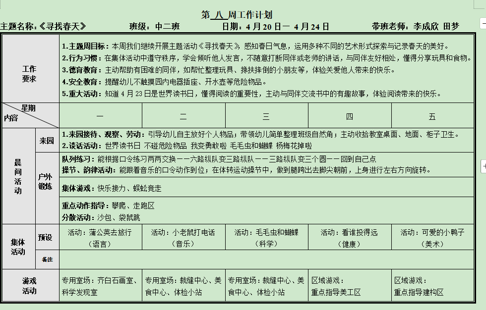 第八周工作计划