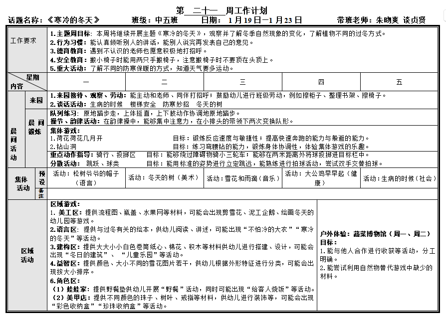 第二十一周工作计划