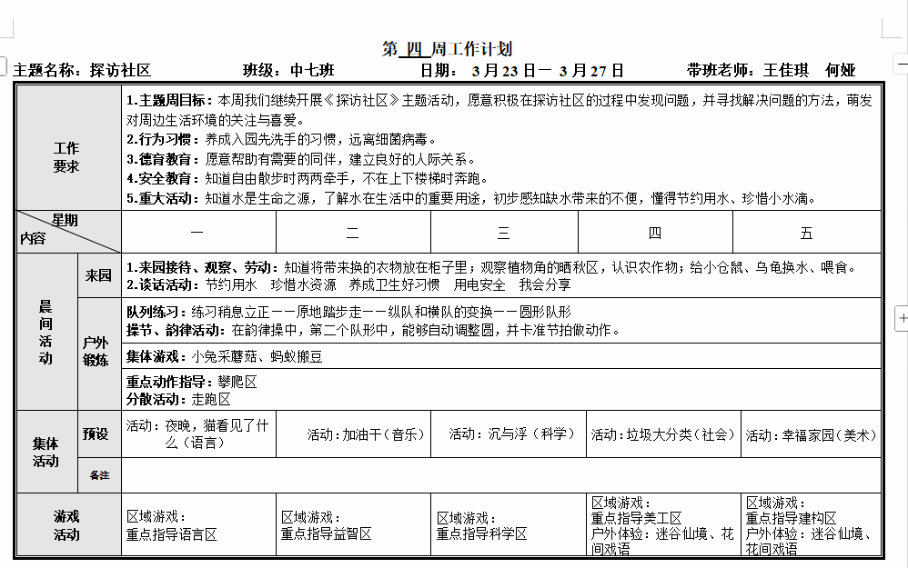 第四周周计划