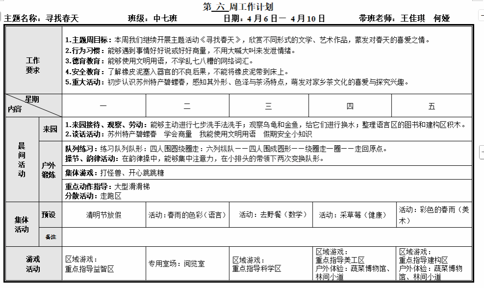 第六周周计划