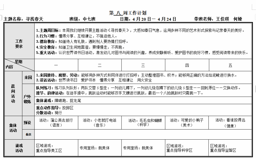 第八周周计划